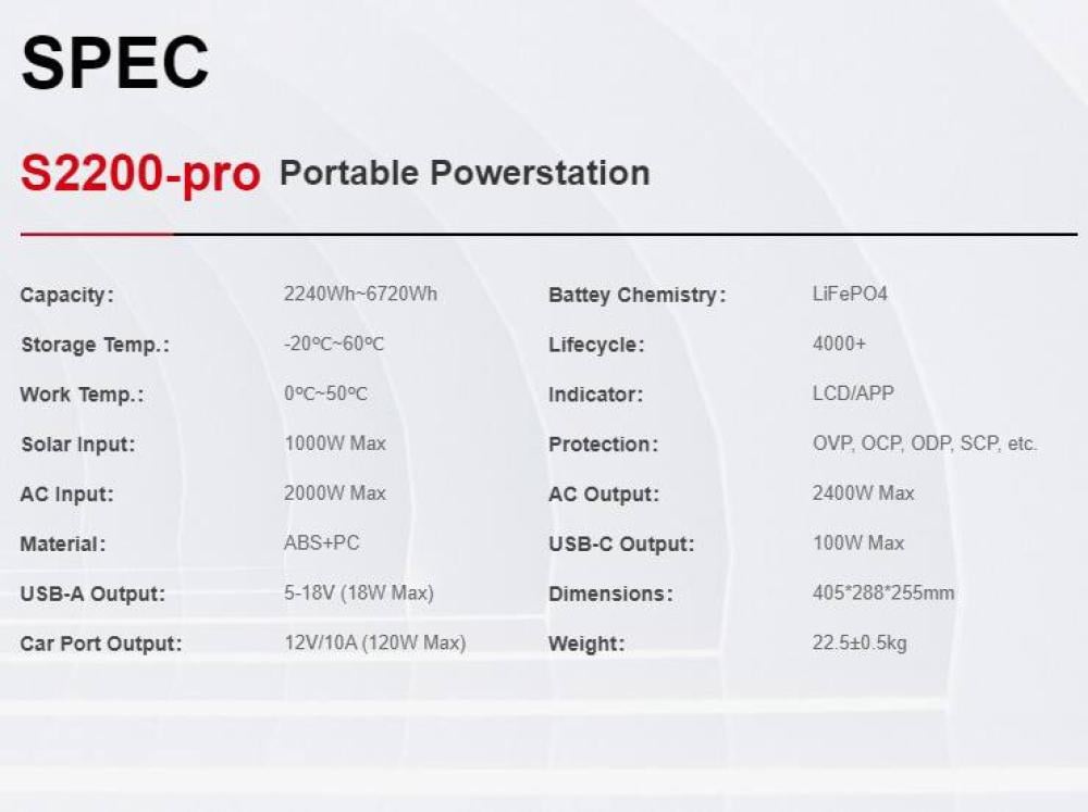 - السعة: من 2240 وات ساعة (Wh) إلى 6720 واط ساعة (Wh)